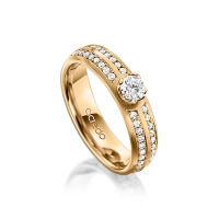 Trauring/Ehering von acredo in Roségold 585/- Oberfläche: längsmatt mit 0,3 ct. + zus. 0,672 ct. Brillant tw, vs