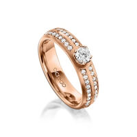 Trauring/Ehering von acredo in Rotgold 585/- Oberfläche: längsmatt mit 0,3 ct. + zus. 0,672 ct. Brillant tw, vs