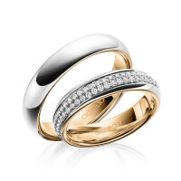 Paar Memoire-Trauringe/Eheringe von acredo in aussen Platin 950/- , innen Roségold 750/- Oberfläche: poliert mit zus. 0,816 ct. Brillant tw, si (Produkt 1 mit Steinbesatz, Produkt 2 ohne Steinbesatz)