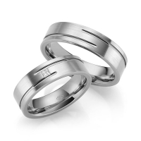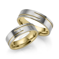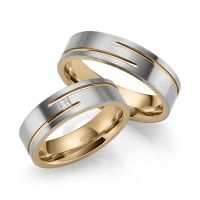 Paar Trauringe/Eheringe in aussen Graugold 585/- , innen Gelbgold 585/- Oberfläche: poliert mit zus. 0,05 ct. Prinzess-Diamant tw, vs (Produkt 1 mit Steinbesatz, Produkt 2 ohne Steinbesatz)