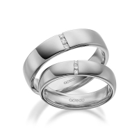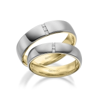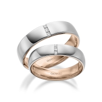 Paar Trauringe/Eheringe von acredo in aussen Graugold 585/- , innen Signature Gold 585/- Oberfläche: poliert mit zus. 0,09 ct. Brillant tw, si