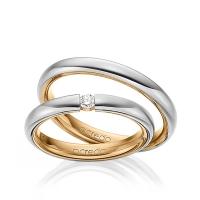 Paar Trauringe/Eheringe von acredo in aussen Roségold 585/- , innen Graugold 585/- Oberfläche: poliert mit zus. 0,08 ct. Brillant tw, si (Produkt 1 mit Steinbesatz, Produkt 2 ohne Steinbesatz)
