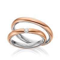 Paar Trauringe/Eheringe von acredo in aussen Rotgold 750/- , innen Platin 950/- Oberfläche: poliert mit zus. 0,08 ct. Brillant tw, si (Produkt 1 mit Steinbesatz, Produkt 2 ohne Steinbesatz)