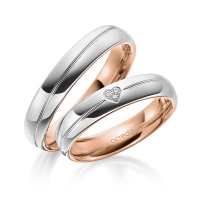 Paar Trauringe/Eheringe von acredo in aussen Weissgold 585/- , innen Roségold 585/- Oberfläche: poliert mit zus. 0,021 ct. Brillant tw, si (Produkt 1 mit Steinbesatz, Produkt 2 ohne Steinbesatz)