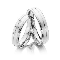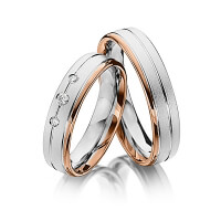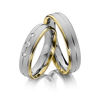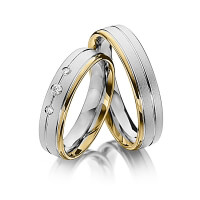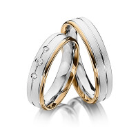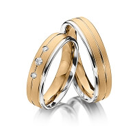 Paar Trauringe/Eheringe von Steinberg in Gelbgold 585/- Weissgold 585/- Oberfläche: poliert, sandmatt mit zus. 0,08 ct. Brillant tw, si (Produkt 1 mit Steinbesatz, Produkt 2 ohne Steinbesatz)