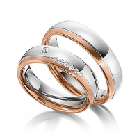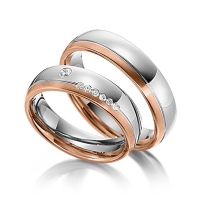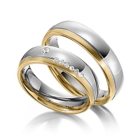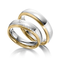Paar Trauringe/Eheringe von Steinberg in Gelbgold 585/- Weissgold 585/- Oberfläche: längsmatt, poliert mit zus. 0,1 ct. Brillant tw, si (Produkt 1 mit Steinbesatz, Produkt 2 ohne Steinbesatz)