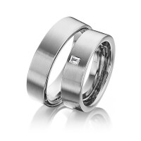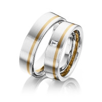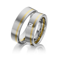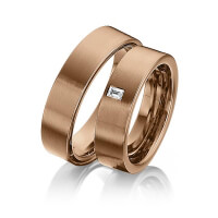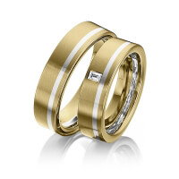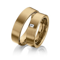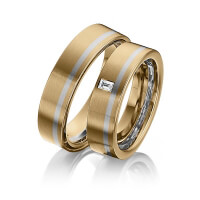 Paar Trauringe/Eheringe von 123GOLD in Graugold dunkel 585/- Gelbgold 585/- Oberfläche: längsmatt mit zus. 0,08 ct. Baguette-Diamant tw, vs (Produkt 1 mit Steinbesatz, Produkt 2 ohne Steinbesatz)