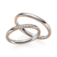 Paar Trauringe/Eheringe von acredo in Roségold 585/- Weissgold 585/- Oberfläche: poliert mit zus. 0,04 ct. Brillant tw, si (Produkt 1 mit Steinbesatz, Produkt 2 ohne Steinbesatz)