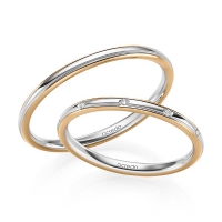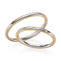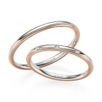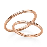Paar Trauringe/Eheringe von acredo in Rotgold 585/- Graugold 585/- Oberfläche: poliert mit zus. 0,025 ct. Brillant tw, si (Produkt 1 mit Steinbesatz, Produkt 2 ohne Steinbesatz)