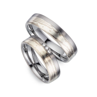 Paar Trauringe/Eheringe in Tantal 900/- Mokume Gane Silber 925/- Palladium 500/- Oberfläche: längsmatt mit zus. 0,06 ct. Brillant tw, si (Produkt 1 mit Steinbesatz, Produkt 2 ohne Steinbesatz)