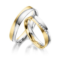 Paar Trauringe/Eheringe von acredo in Weissgold 585/- Roségold 585/- Oberfläche: poliert, längsmatt mit zus. 0,05 ct. Brillant tw, si (Produkt 1 mit Steinbesatz, Produkt 2 ohne Steinbesatz)