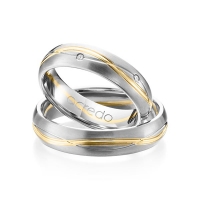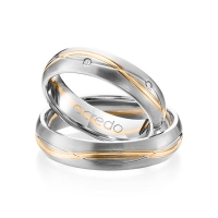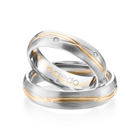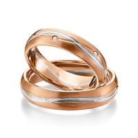 Paar Trauringe/Eheringe von acredo in Weissgold 585/- Rotgold 585/- Oberfläche: längsmatt, poliert mit zus. 0,06 ct. Brillant tw, si (Produkt 1 mit Steinbesatz, Produkt 2 ohne Steinbesatz)