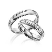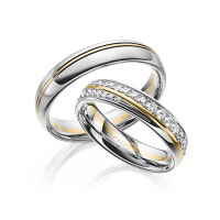 Paar Trauringe/Eheringe von acredo in Weissgold 585/- Rotgold 585/- Oberfläche: poliert mit zus. 0,964 ct. Brillant tw, si (Produkt 1 mit Steinbesatz, Produkt 2 ohne Steinbesatz)