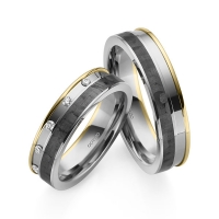 Paar Trauringe/Eheringe von acredo in Rotgold 585/- Weissgold 585/- Rotgold 585/- Carbon-Einzug Oberfläche: poliert mit zus. 0,1 ct. Brillant tw, si (Produkt 1 mit Steinbesatz, Produkt 2 ohne Steinbesatz)