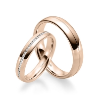 Paar Memoire-Trauringe/Eheringe von acredo in Rotgold 585/- Oberfläche: poliert mit zus. 0,14 ct. Brillant tw, si (Produkt 1 mit Steinbesatz, Produkt 2 ohne Steinbesatz)