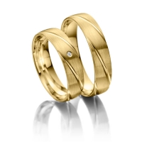 Paar Trauringe/Eheringe in Gelbgold 585/- Oberfläche: längsmatt mit zus. 0,02 ct. Brillant tw, si (Produkt 1 mit Steinbesatz, Produkt 2 ohne Steinbesatz)