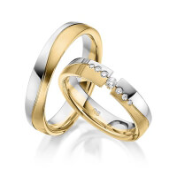 Paar Trauringe/Eheringe von acredo in Gelbgold 585/- Oberfläche: poliert, längsmatt mit zus. 0,11 ct. Brillant tw, si (Produkt 1 mit Steinbesatz, Produkt 2 ohne Steinbesatz)