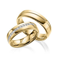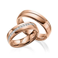 Paar Trauringe/Eheringe von acredo in Graugold 585/- Oberfläche: poliert mit zus. 0,48 ct. Prinzess-Diamant tw, vs (Produkt 1 mit Steinbesatz, Produkt 2 ohne Steinbesatz)