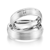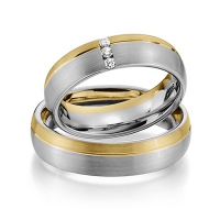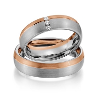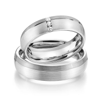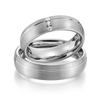 Paar Trauringe/Eheringe von Steinberg in Graugold dunkel 585/- Oberfläche: längsmatt mit zus. 0,075 ct. Brillant tw, si (Produkt 1 mit Steinbesatz, Produkt 2 ohne Steinbesatz)