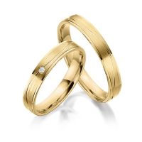 Paar Trauringe/Eheringe von acredo in Roségold 585/- Oberfläche: poliert, längsmatt mit zus. 0,015 ct. Brillant tw, si (Produkt 1 mit Steinbesatz, Produkt 2 ohne Steinbesatz)