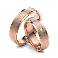 Paar Trauringe/Eheringe in Roségold 585/- Oberfläche: poliert, eismatt mit zus. 0,03 ct. Brillant tw, si (Produkt 1 mit Steinbesatz, Produkt 2 ohne Steinbesatz)
