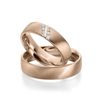 Paar Trauringe/Eheringe von acredo in Roségold 585/- Oberfläche: schrägmatt mit zus. 0,096 ct. Brillant tw, si (Produkt 1 mit Steinbesatz, Produkt 2 ohne Steinbesatz)
