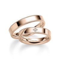 Paar Trauringe/Eheringe von acredo in Rotgold 585/- Oberfläche: poliert mit zus. 0,02 ct. Brillant tw, si (Produkt 1 mit Steinbesatz, Produkt 2 ohne Steinbesatz)