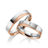 Paar Trauringe/Eheringe von acredo in Rotgold 585/- Oberfläche: poliert, längsmatt mit zus. 0,045 ct. Brillant tw, si (Produkt 1 mit Steinbesatz, Produkt 2 ohne Steinbesatz)