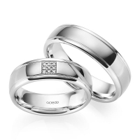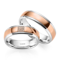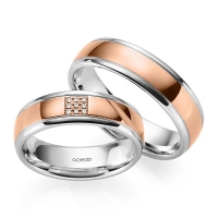 Paar Trauringe/Eheringe von acredo in Rotgold 585/- Oberfläche: poliert mit zus. 0,045 ct. Brillant tw, si (Produkt 1 mit Steinbesatz, Produkt 2 ohne Steinbesatz)