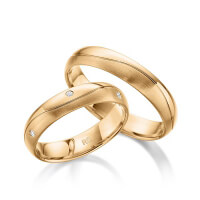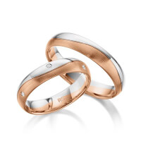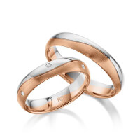 Paar Trauringe/Eheringe von acredo in Rotgold 585/- Oberfläche: poliert, längsmatt mit zus. 0,06 ct. Brillant tw, si (Produkt 1 mit Steinbesatz, Produkt 2 ohne Steinbesatz)