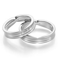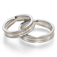 Paar Trauringe/Eheringe von acredo in Signature Gold 585/- Oberfläche: poliert, längsmatt mit zus. 0,04 ct. Brillant tw, si (Produkt 1 mit Steinbesatz, Produkt 2 ohne Steinbesatz)