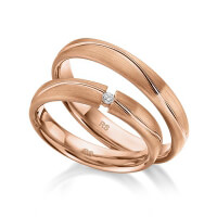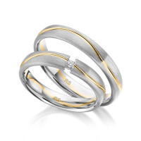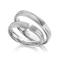 Paar Trauringe/Eheringe von acredo in Weissgold 585/- Oberfläche: längsmatt, poliert mit zus. 0,03 ct. Brillant tw, si (Produkt 1 mit Steinbesatz, Produkt 2 ohne Steinbesatz)