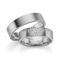 Paar Trauringe/Eheringe von acredo in Weissgold 585/- Oberfläche: längsmatt mit zus. 0,114 ct. Brillant tw, si (Produkt 1 mit Steinbesatz, Produkt 2 ohne Steinbesatz)