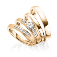 Set von acredo in Roségold 750/- Oberfläche: längsmatt mit 0,4 ct. + zus. 0,39 ct. Prinzess-Diamant & Brillant tw, si tw, vs